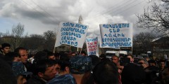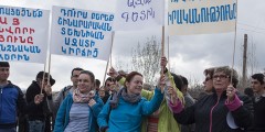 Garni-Yerevan road was closed again yesterday. On one side of the stones were Garni residents, on the other side - disgruntled drivers and police. The reason of the protest action is Kaghtsrashen gravity irrigation system construction, which is carried out at the expense of the Azat River.