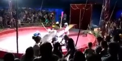 Կրկեսում վարժեցված վայրի կենդանիների մասնակցությամբ հերթական չափազանց վտանգավոր միջադեպն է տեղի ունեցել: Ռուսական կրկեսի հայտնի վարժեցնողներ՝ Զապաշնի եղբայրների ներկայացումը դուրս է եկել ծրագրված սահմաններից: Հենց ներկայացման ընթացքում վագրերից մեկը հարձակվել է առյուծի վրա և նրանց միջև մենամարդ է սկսվել: Եղբայրներից մեկը ստիպվա...