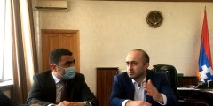 Շրջակա միջավայրի նախարար Ռոմանոս Պետրոսյանն աշխատանքային այցով գտնվում է Արցախի Հանրապետությունում։ Այցի շրջանակում նախարարը հանդիպել է Արցախի Հանրապետության տարածքային կառավարման և ենթակառուցվածքների նախարար Հայկ Խանումյանի հետ։ Հանդիպմանը մասնակցում էին նախարարի խորհրդական Հ․ Մարտիրոսյանը, Շրջակա միջավայրի նախարարության ...