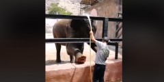 Ինչպես է շոգի դեմ պայքարում Երևանի կենդանաբանական այգու փղիկը