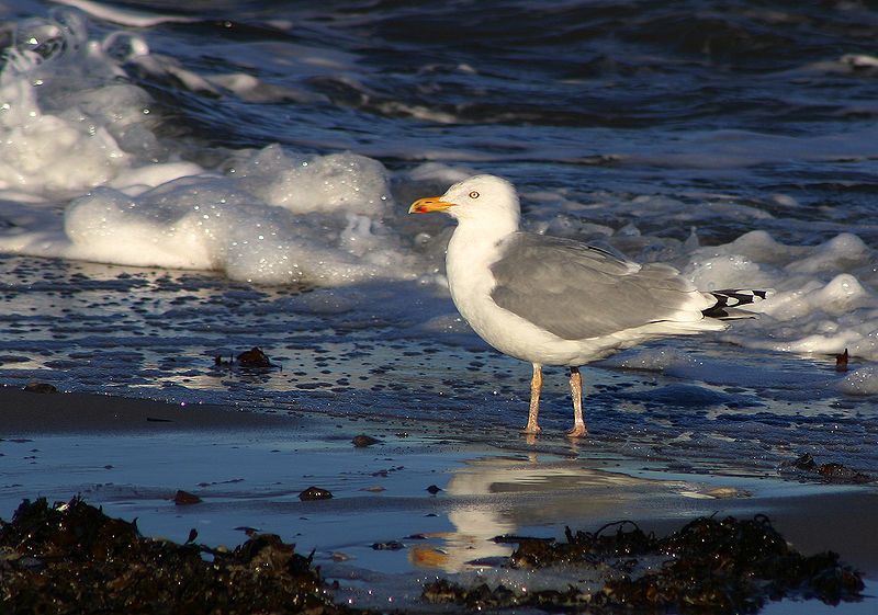 Ձայնարկությունները նման են այլ խոշորամարմին որորների ձայնին: Դա նման է խռպոտ ճչոցի, որոնք վտանգի պահերին ավելի հաճախ են կրկնվում: Բարձր ձայն հանելիս հաճախ գլուխը ետ է գցում: Ձայնն ավելի բարձ է, քան Larus fuscus տեսակի մոտ, երբեմն ցածր, քան Larus hyperboreus տեսակի մոտ: