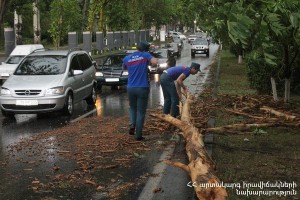 Հիշեցնենք, որ այսօր Արմավիրի մարզում գրանցվել է ուժեղ քամի` 23մ/վ, Աշտարակում՝ 13-20մ/վ, Երևանում՝ 8-20մ/վ ուժգնությամբ: Քամու հետևանքով առկա են տանիքից պոկված թիթեղներ, կոտրված ու արմատախիլ ծառեր, որոնց արդյունքում ճանապարհներին առաջացել են արգելափակումներ: Քամու հետևանքով վնասվել են հոսանքի հաղորդալարեր և գազատար խողովակներ: Գրանցվել է նաև տան և ավտոտնակի հրդեհ: