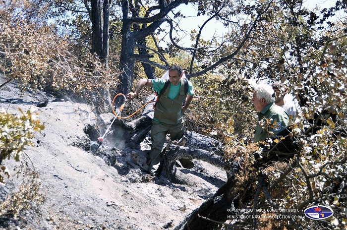 «Խոսրովի անտառ» պետական արգելոցում բռնկված հրդեհի հետմարման աշխատանքները շարունակվում են մեծ ինտենսիվությամբ: Արգելոցի տարածքում օրենքով սահմանված` մարդկային որևէ միջամտության բացառման պատճառով տեղում կուտակված բուսականության մնացորդները տասնամյակների ընթացքում ձևավորել են հումուսի հաստ շերտ, որում օգոստոսի 12-ին բռնկված հրդեհի շիջումից հետո էլ թաքնված այրում է ընթանում: Հրդեհից վնասված որոշ հատվածներ պարբերաբար ծխում են և համապատասխան միջոցներ չձեռնարկելու դեպքում կարող են նոր օջախների վերածվել:
